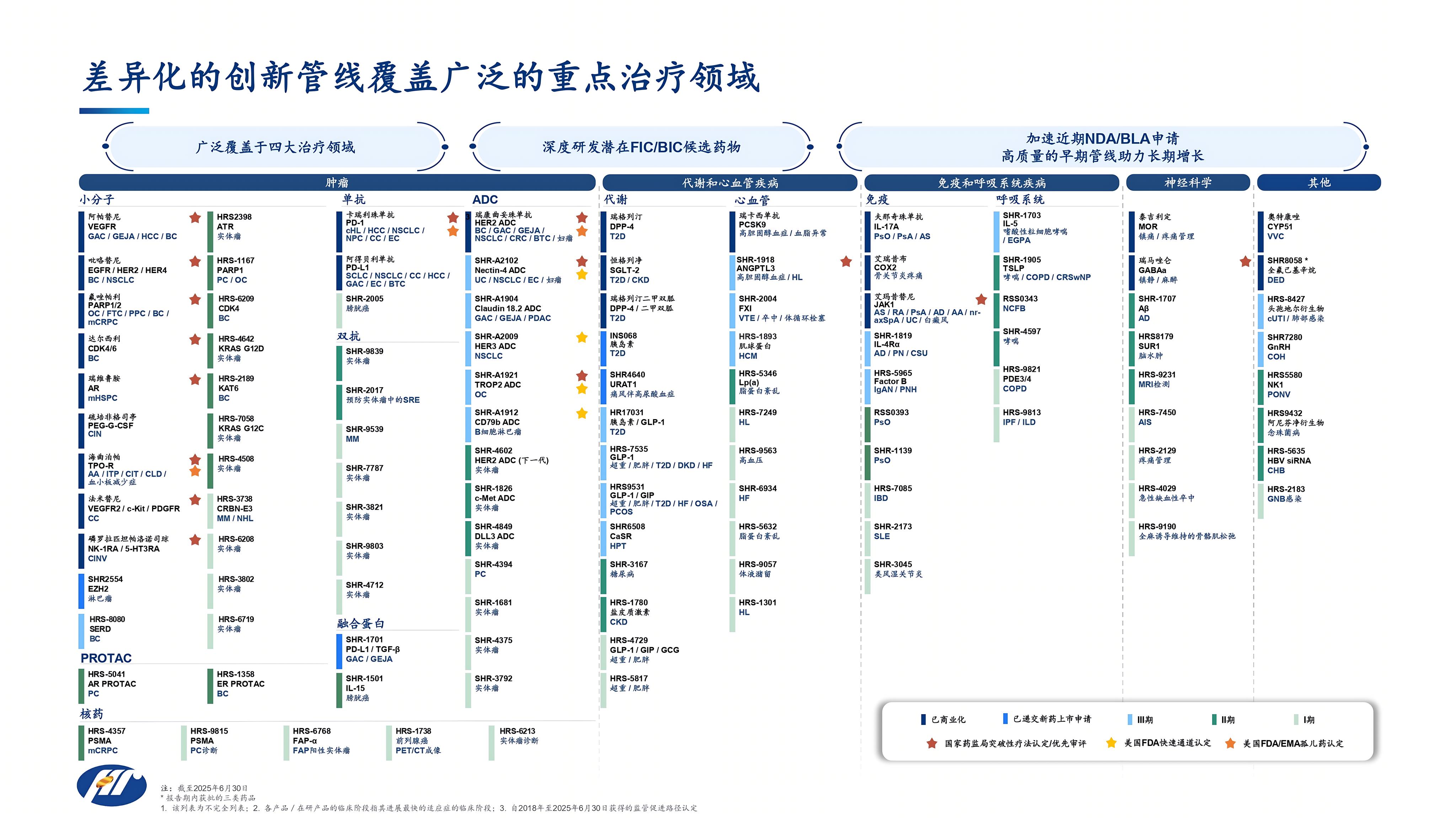 公司在肿瘤领域有丰富的研发管线,同时在代谢和心血管疾病、免疫和呼吸系统疾病以及神经科学等领域也进行了广泛布局。